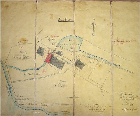 Lageplan obere Mühle in Einöd von 1883